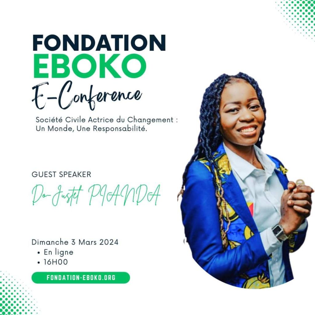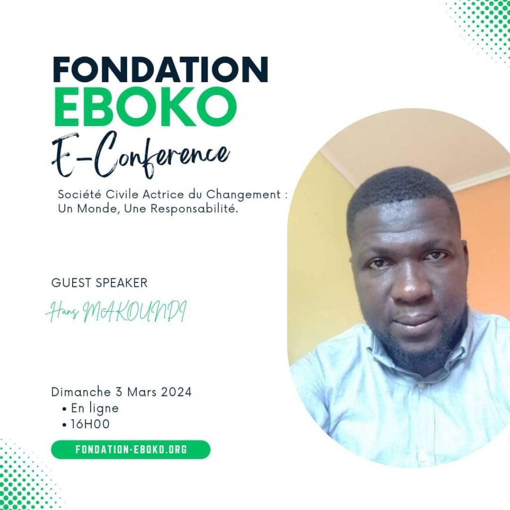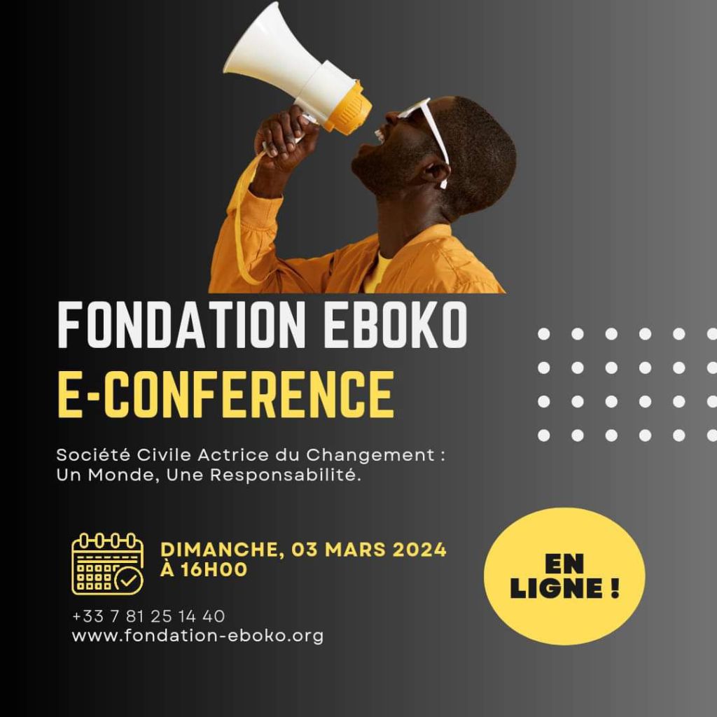 Le dimanche 3 mars, la Fondation Eboko a organisé une E-conférence captivante sur le thème « Société Civile Actrice du Changement : Un Monde, Une Responsabilité ». Cet événement virtuel a réuni un panel d’intervenants inspirants qui ont partagé leurs idées sur le rôle crucial de la société civile dans la promotion du changement positif à l’échelle mondiale.