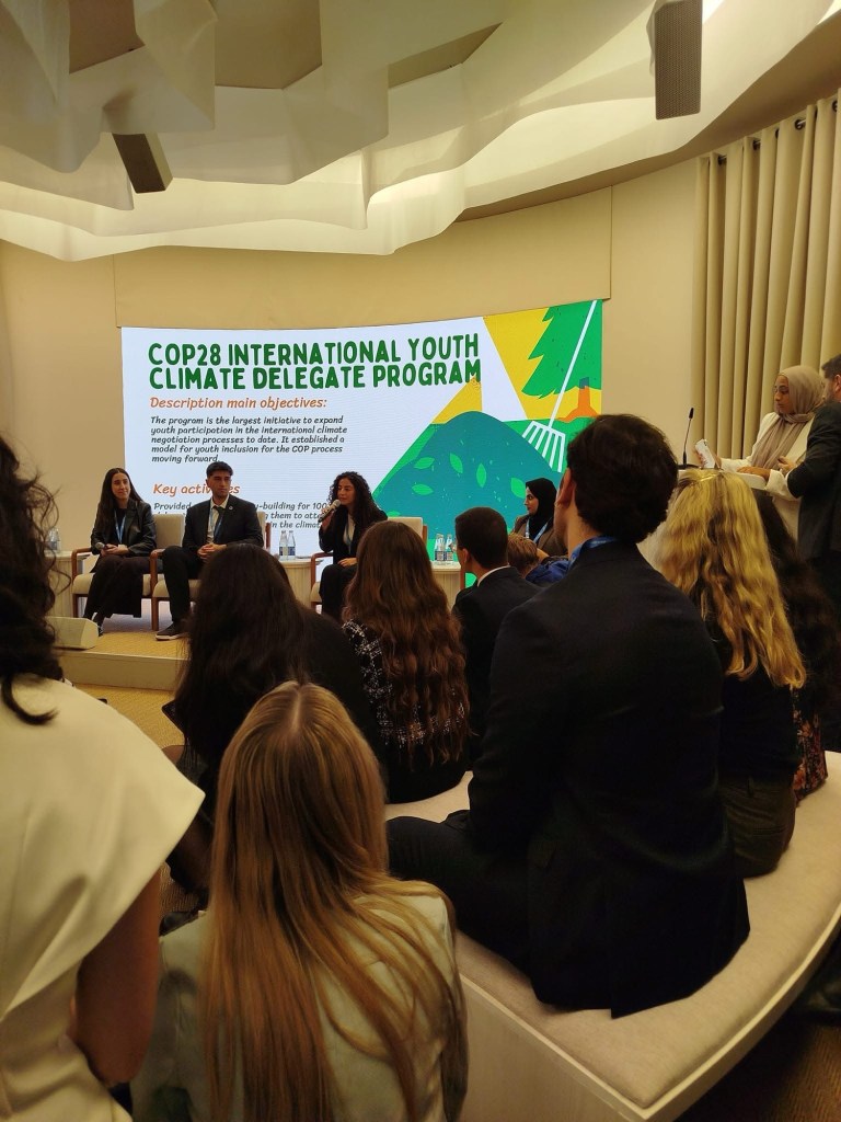 Un temps fort de notre participation a été la rencontre avec vingt-cinq jeunes venus d’Espagne, du Canada, d’Australie, du Niger, du Mexique, de Colombie, de Turquie, d’Azerbaïdjan et d’autres pays. Invités par l’initiative #Decarbonize, nous avons échangé sur leurs projets et découvert le Global Child Climate Manifesto, un plaidoyer ambitieux pour un avenir durable.
